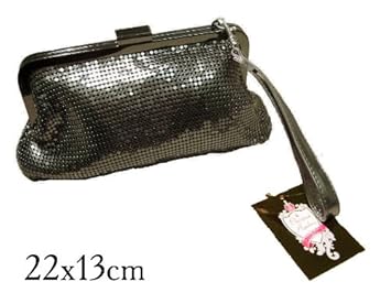 Details About Christina Aguilera Dark Silver Metal Mesh Clutch Handbag